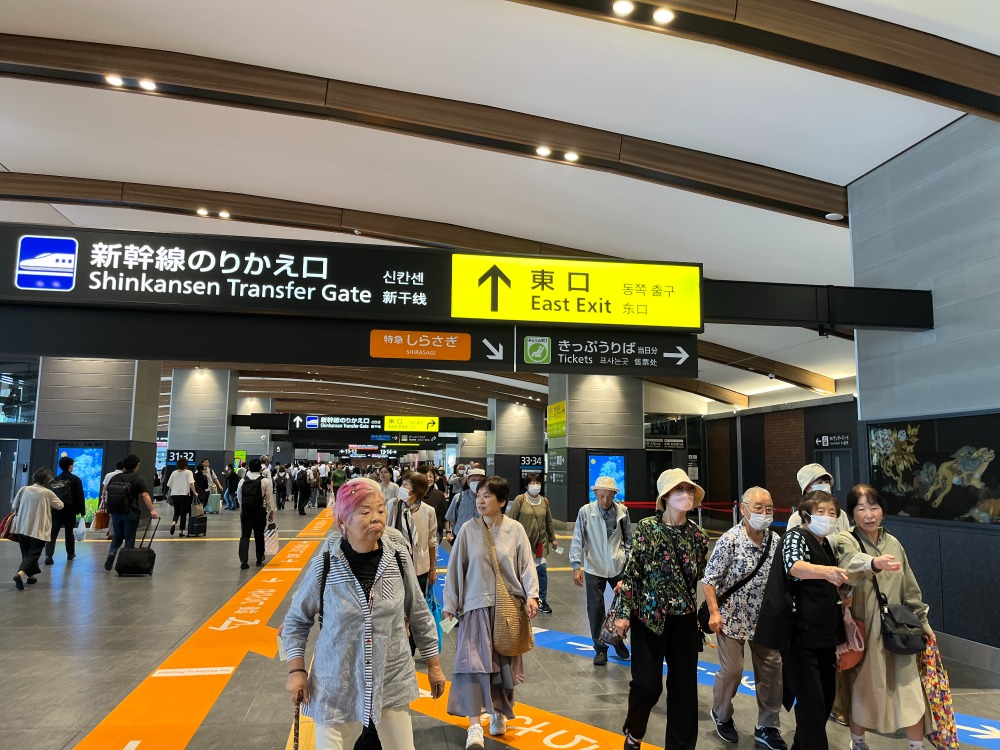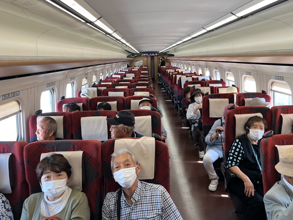 今年のお楽しみバスツアーはなんと!行きは北陸新幹線に乗車して敦賀駅まで行きました。金沢駅から敦賀駅までは50分程度。初めて新幹線に乗車する方や敦賀駅に初めて行く方も沢山いて改札を通るのもドキドキの旅となりました。