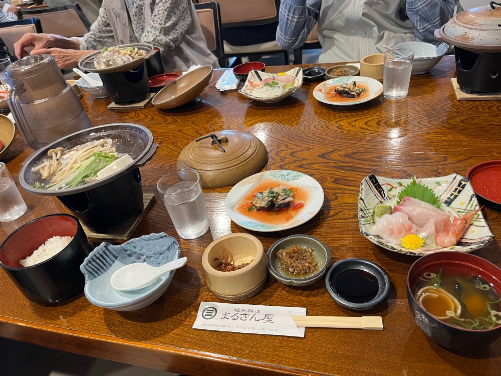 敦賀駅に降車後はお土産を買って昼食会場のまるさん屋まで歩きました。