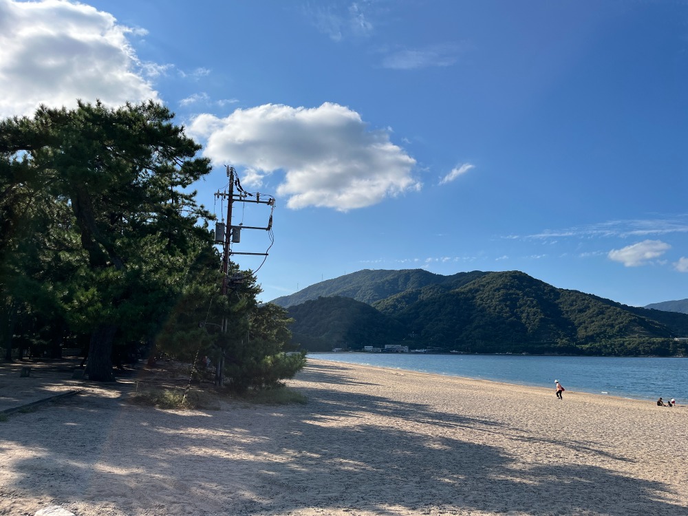 最後に日本三大松原の一つ気比の松原へ行きました。アカマツとクロマツが入り混じる風景は40万平方メートルにも及びます。芭蕉が気比の松原で名月を眺めたかった場所とも言われており、あいにくの雨で中秋の名月をみることは叶わなかったけど、白浜と青松のコントラストが美しい景勝地を訪れたといわれています。