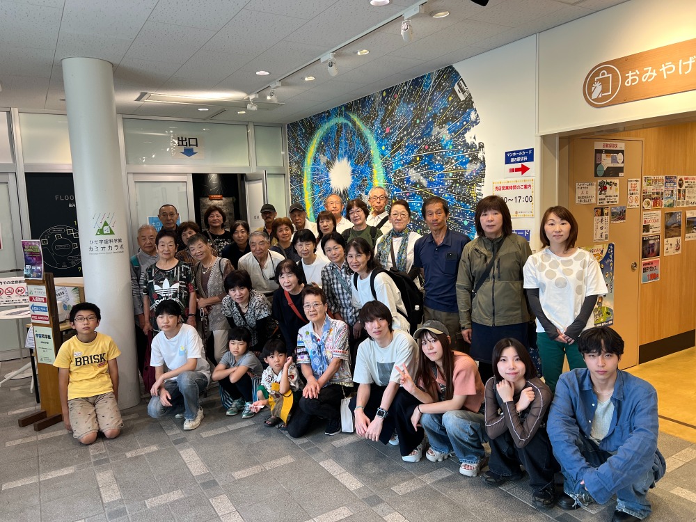 今回日曜日ということもあり、小中学生や若い方、ご夫婦の参加者が多くとても幅広い年代の方に参加いただきました。事業を通して普段目にすることができない宇宙科学に触れ、県内にゆかりのある神社を参拝し、大自然に触れることができました。生涯学習として多世代に渡り関心を持って沢山の方が参加してくれ、五感を使って沢山の学びができた研修となりました。