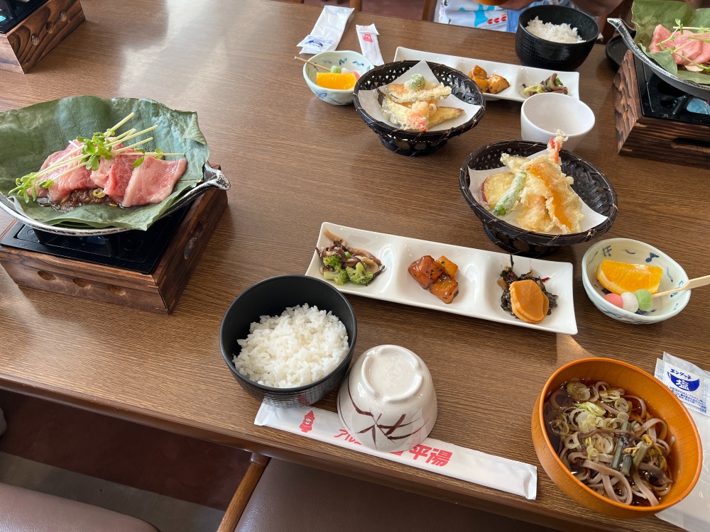 昼食は平湯で飛騨牛のほうば味噌をいただきました。