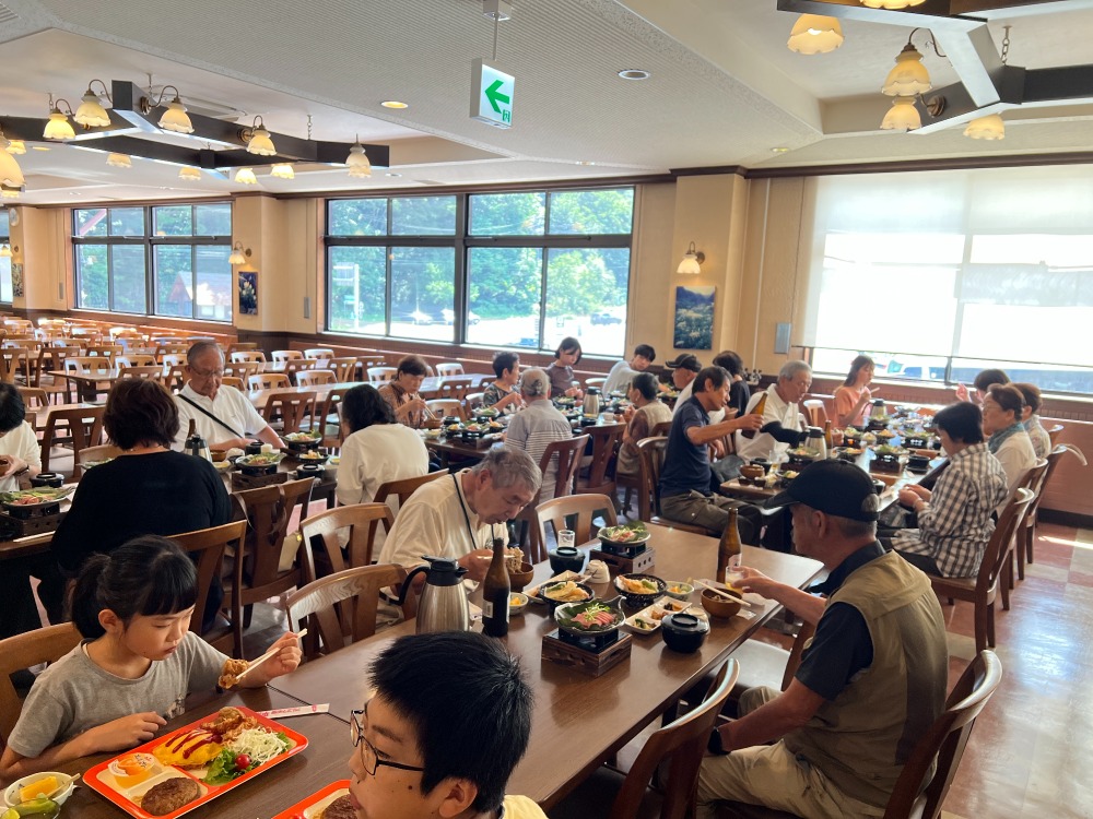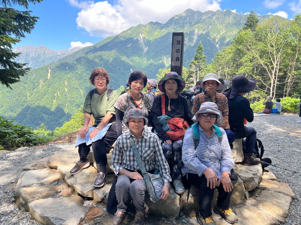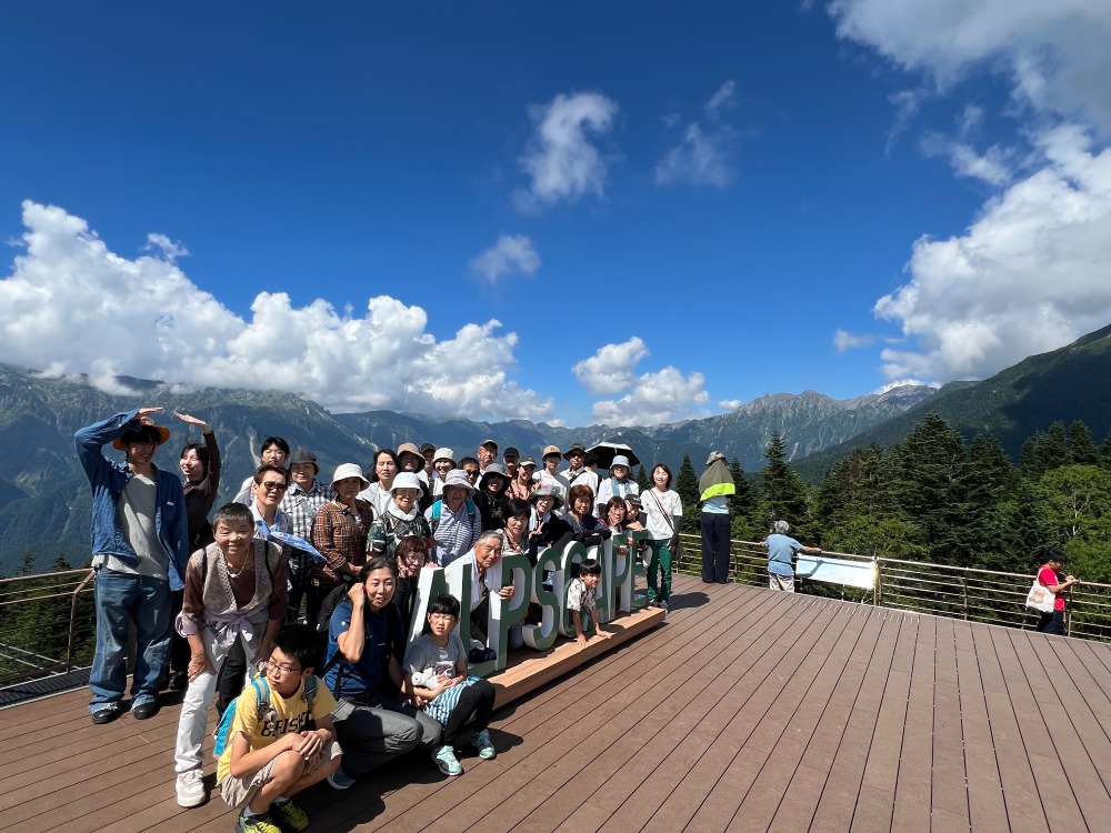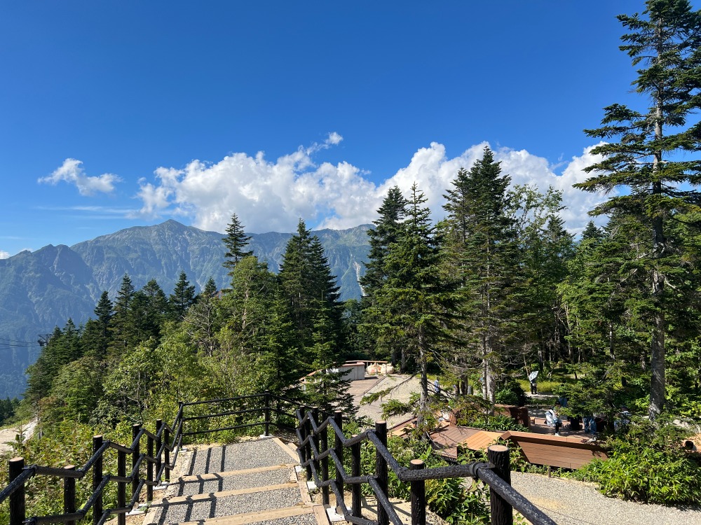 昼食後、二階建ての新穂高ロープウェイに乗車しいざ山頂へ‼新穂高、頂の森に到着すると気温は19度。市内は35度以上ある中、とても過ごしやすい気温で森林浴をしながら五感で自然に触れてきました。オオシラビソの道を散策し、オオシラビソの巨木やコメツガの巨木の中を歩き北アルプスの雄大が山岳景観を見る事ができました。