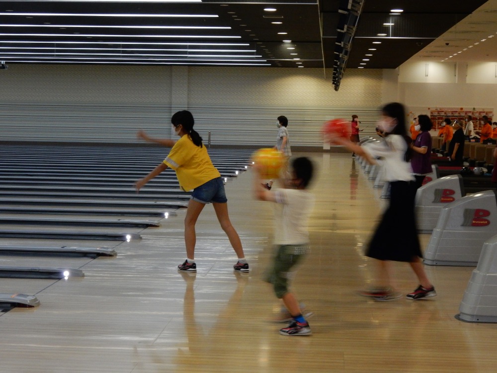 ボウリング大会では、毎年縦割り班で行うため高学年のお兄さんお姉さんが一年生の面倒をよく見てくれるので和気あいあい盛り上がります!スペアやストライクがでるたびに歓声が上がり、感染予防のためハイタッチはできませんが大盛り上がりでした♬