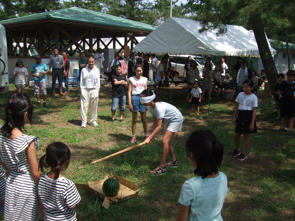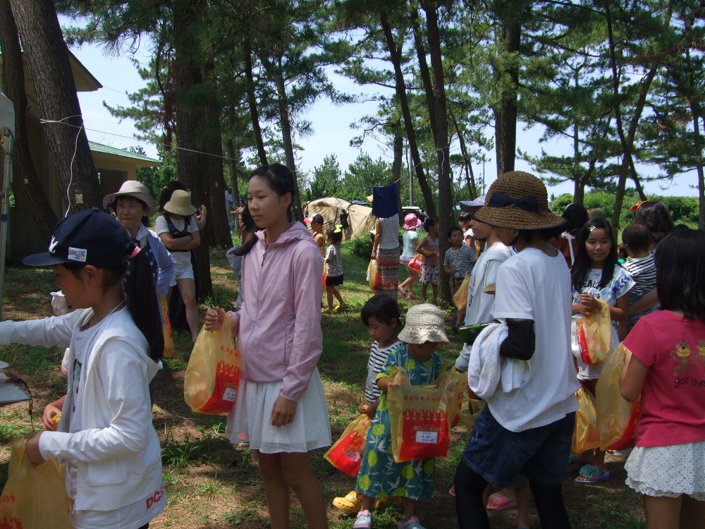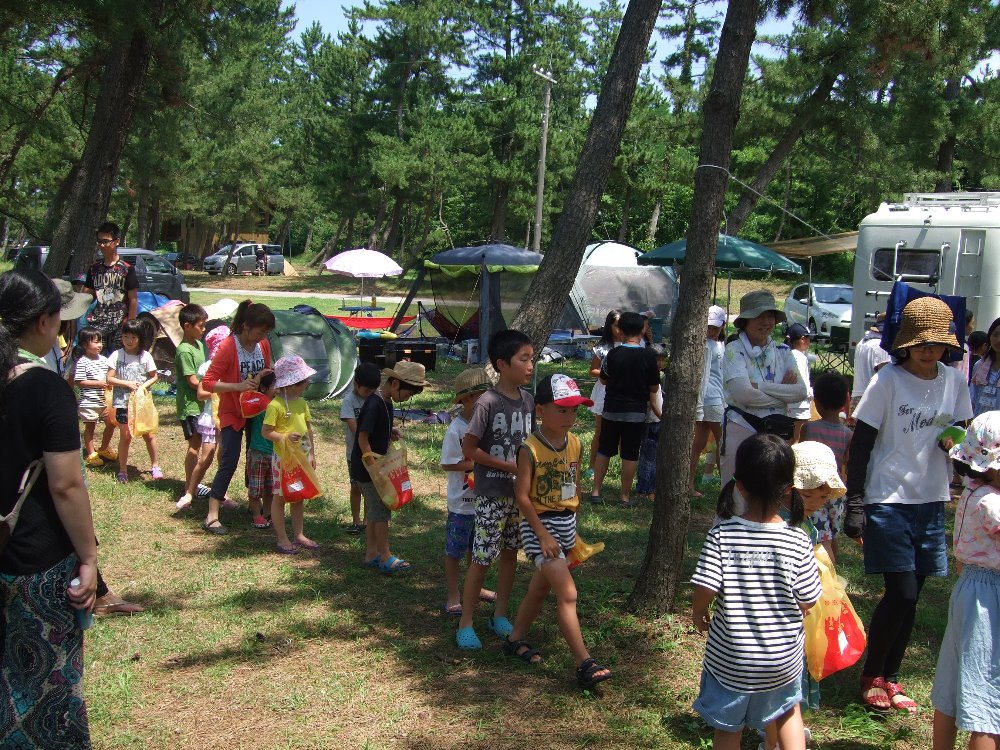 花のミュージアムを出発し、次に向かったのは大島キャンプ場。バーベキューや宝探しゲーム、海水浴を楽しみました。医王山と鶴ヶ丘西公民館と合わせて120人の交流。お腹いっぱいバーベキューを楽しみ、波もおだやかなキレイな海での海水浴!夏休みのいい思い出になったと思います。準備していただいた鶴ヶ丘西公民館の皆様、参加いただいた皆様ありがとうございました。