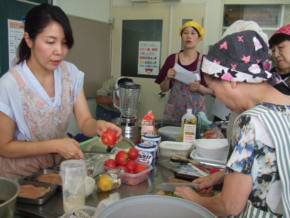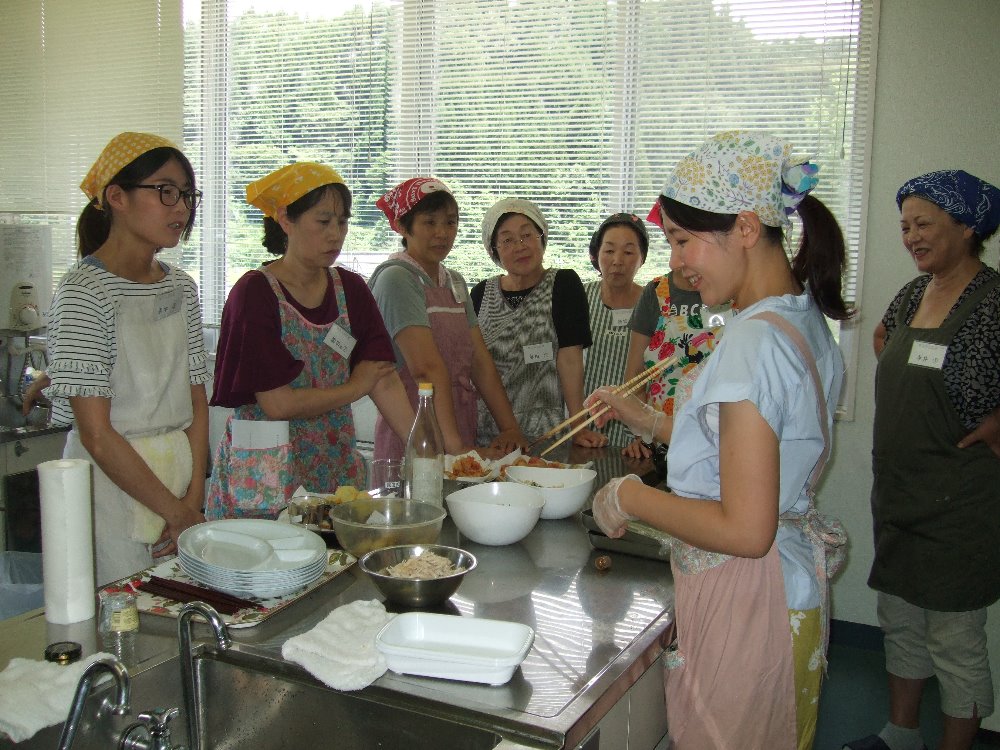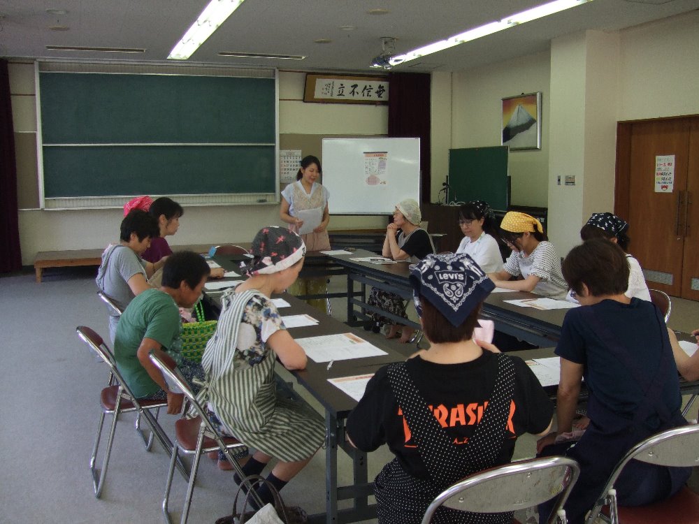 地元の方々は、畑をされている方も多いです。畑をしていなくてもご近所さんから沢山の採れたて夏野菜をもらいます。たくさんもらうけどレシピはマンネリ化...そこで医王山地区、清水町にある金沢キッチン 丸山順子さんを講師にお招きし、夏野菜を使ったアレンジ料理を教えてもらいました。丸山さんは無添加のお料理や地元の採れたて野菜を使ってカフェやお料理教室をされています。今回のお料理教室も無添加で、だしや素材のうまみをいかして美味しいレシピを教えてもらいました。