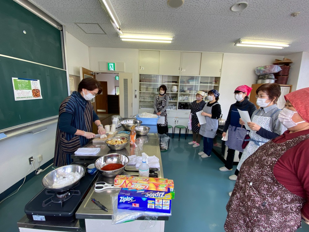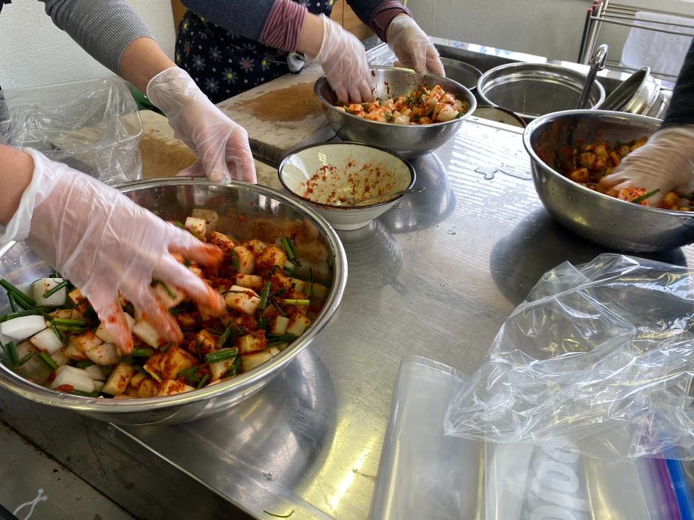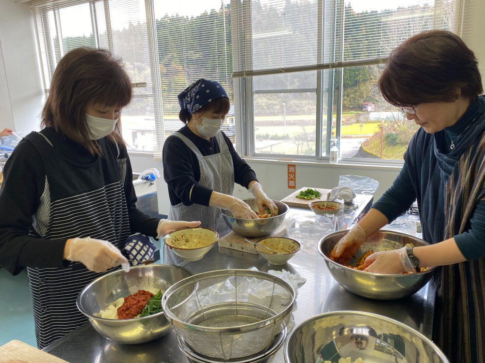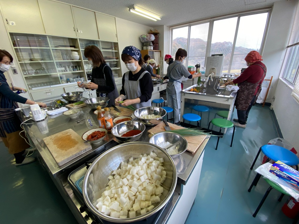 昨年に引き続き、韓流スタジオの黄先生にお越しいただき、冬野菜で沢山採れる大根を使ってキムチ作りを教えていただきました。コロナ禍で久しぶりの調理実習です。