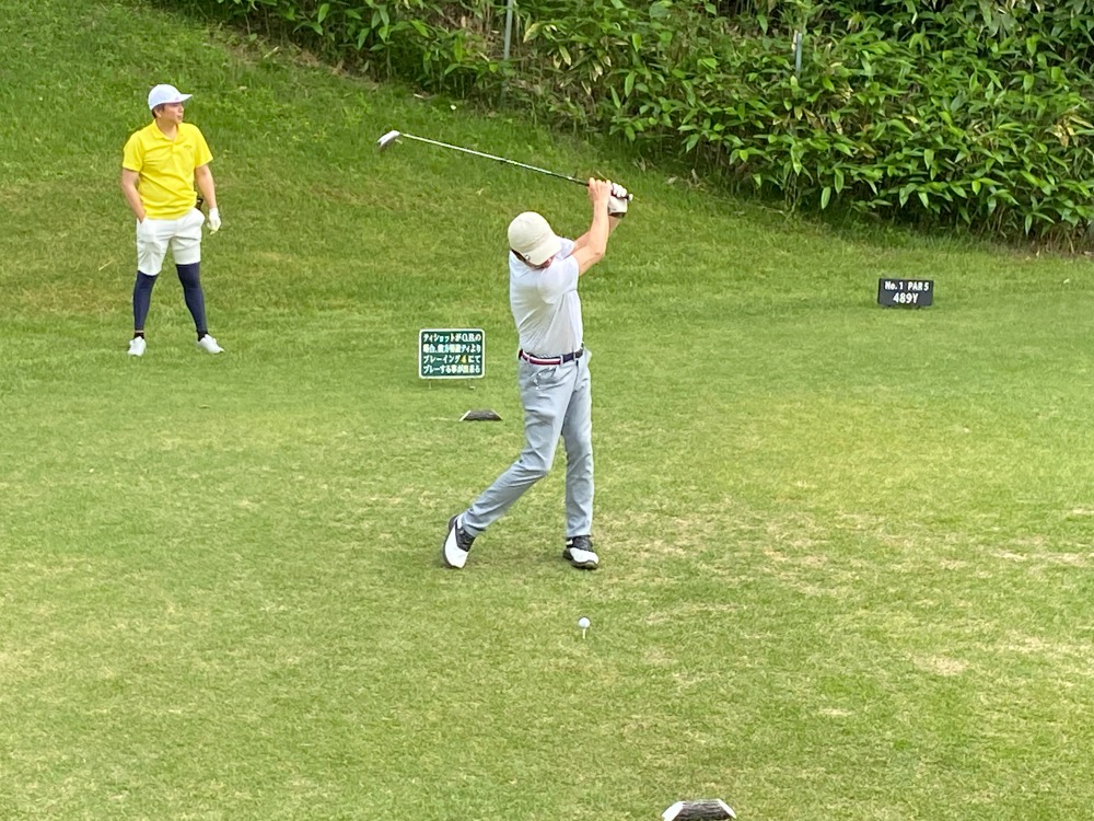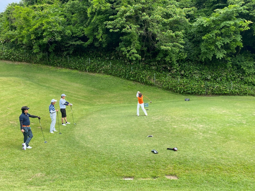 今年ももちろん!快晴(^^♪ゴルフ日和です。副館長よりご挨拶をいただきプレースタートです。