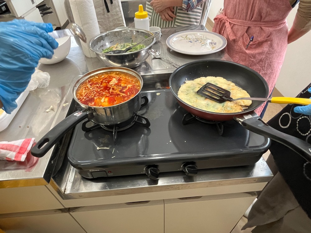 これまでキムチ作り教室でお世話になっているキンパ堂の黄先生(ファン先生)に本場韓国の冬のあったかメニューを教えていただきました。今回はスンドウブとチヂミの2品を作りました。