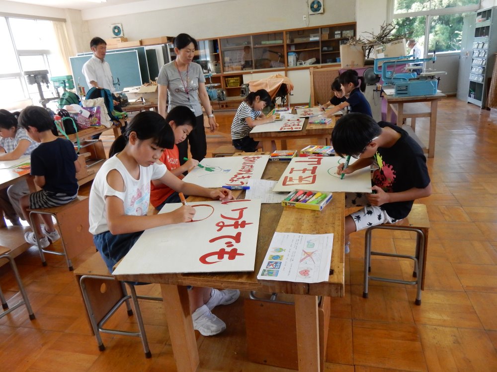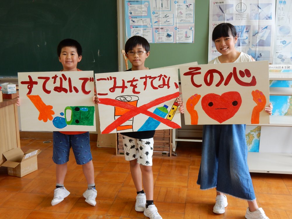 絆の日の一環として、ポイ捨て禁止の看板作りをしています。