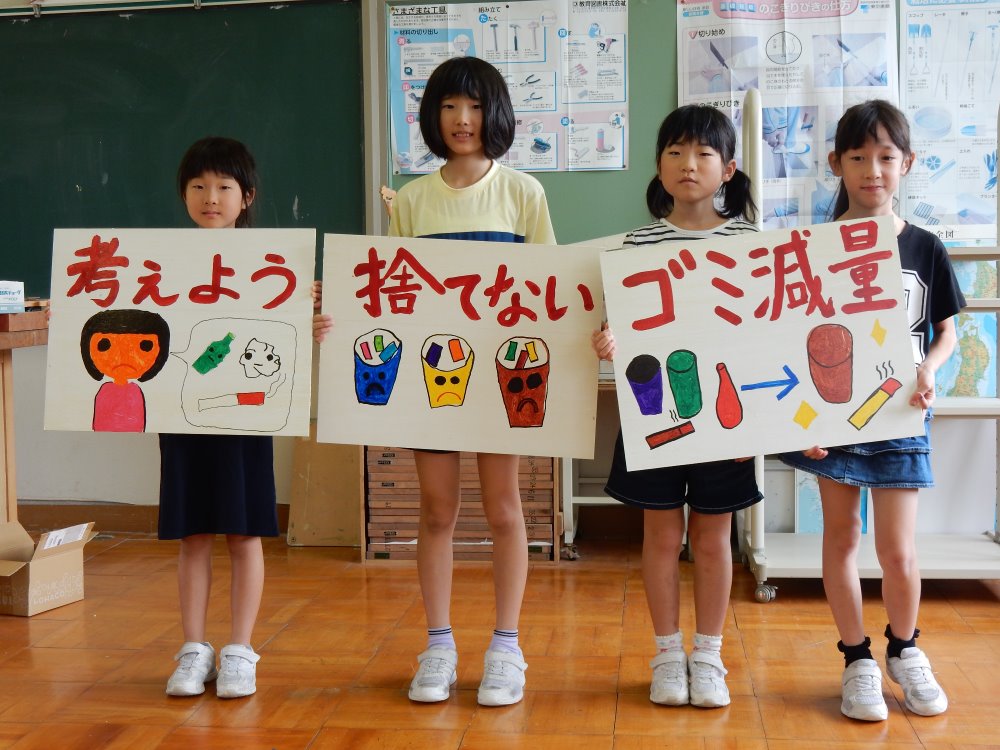 3~6年生はポイ捨て禁止の看板にイラストを描いたり標語を書いてくれました。色鮮やかな看板がたくさんできました。医王山小中学校の学校下は金沢井波線が通っており交通量も多いところです。児童が描いたポイ捨て禁止の看板が地域の美化意識を高めてくれるといいですね!