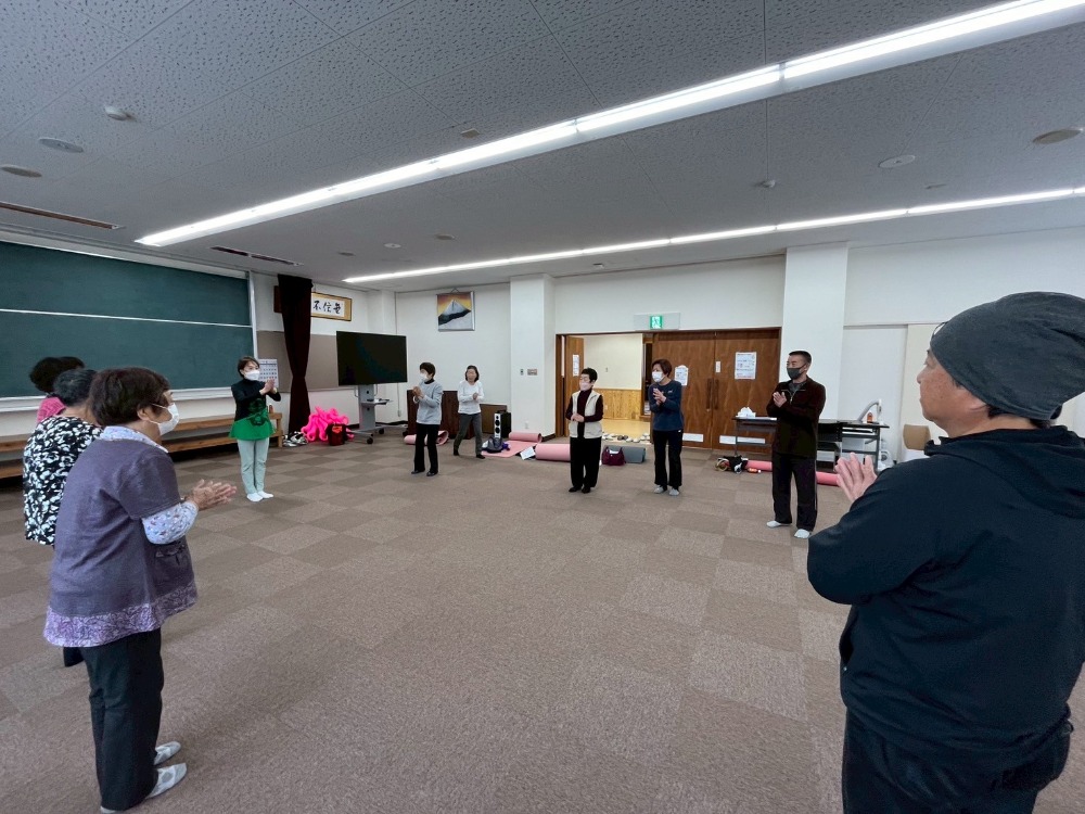 音楽に合わせてリズム体操もしてあっという間の一時間でした。体も心もほぐれて軽くなったような気がしました。自宅でも簡単なストレッチ体操をして体をほぐすといいですね。