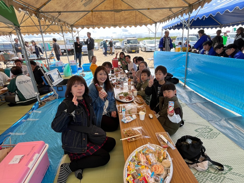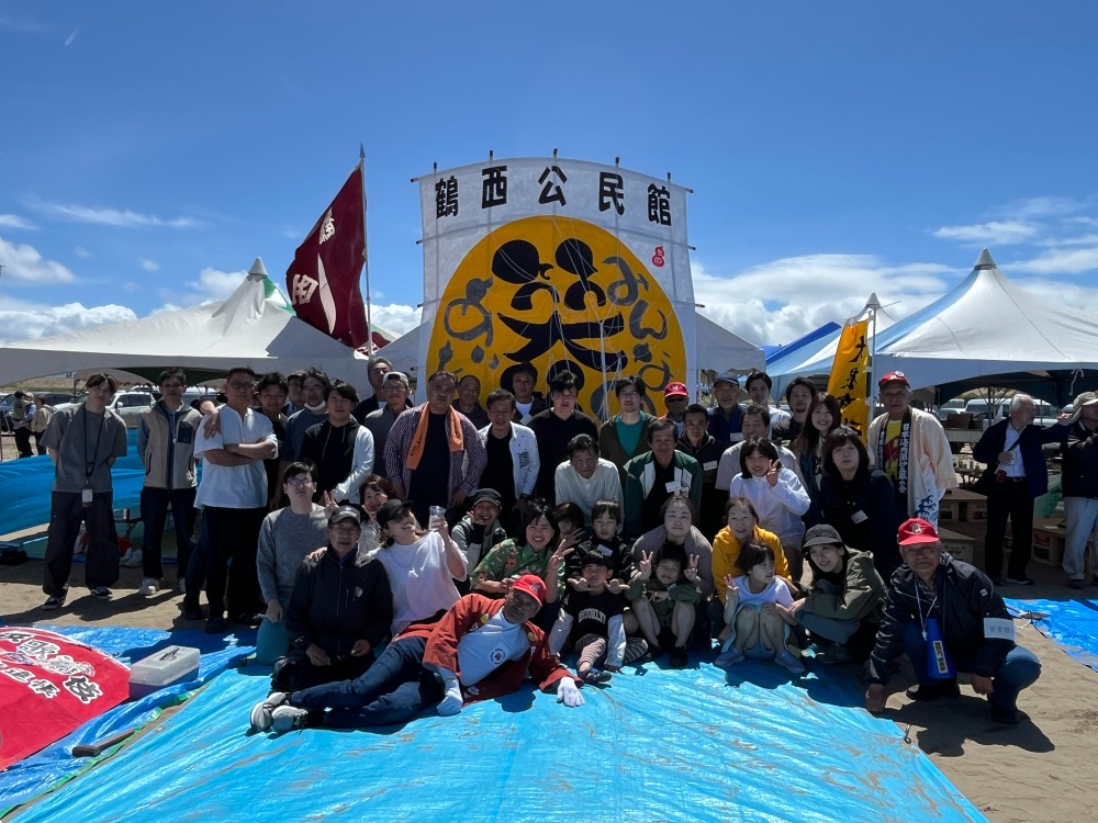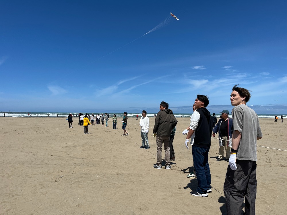 内灘町鶴が丘公民館との交流事業で世界の凧の祭典に参加しました。今年の合同製作の凧は鶴ヶ丘西公民館で己書の教室をされている先生の書「みんなの笑顔にあいたい」が書かれた大凧でした。今回の凧の祭典は能登半島地震復興祈念と題し内灘町でも能登半島地震の爪痕が大きく残り、液状化するなど大きな被害がありましたが、大凧をあげて各公民館が交流し沢山の笑顔に包まれていました。