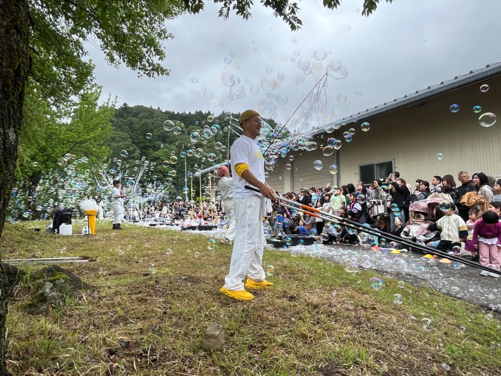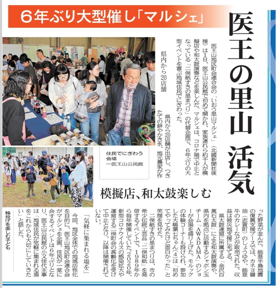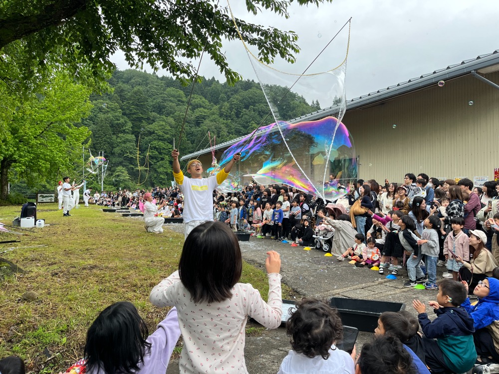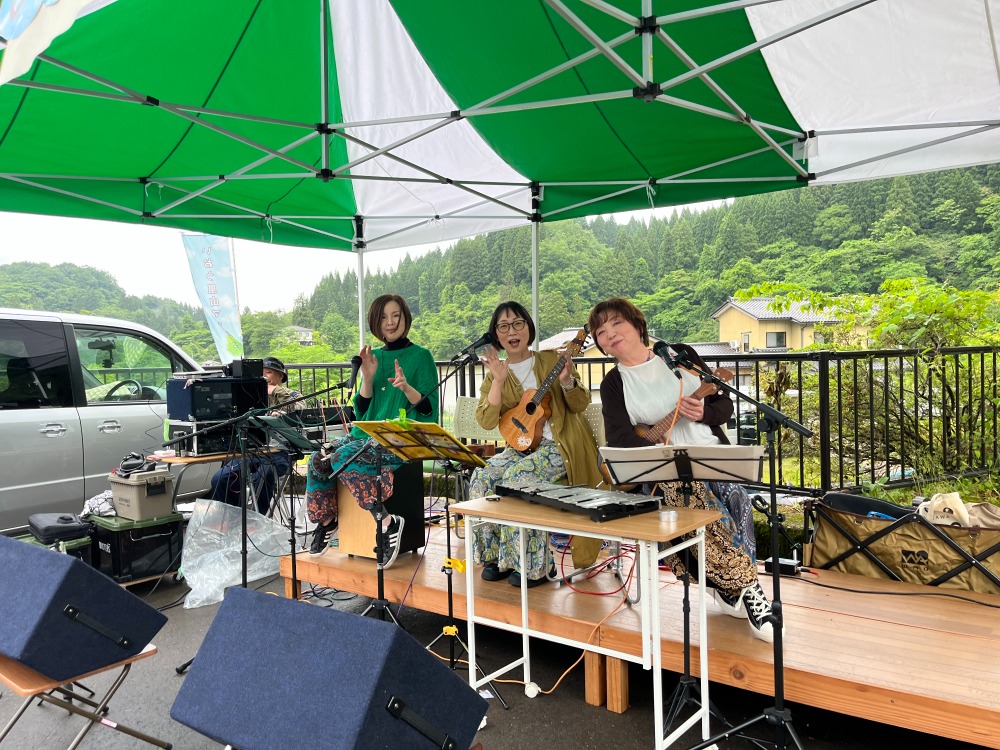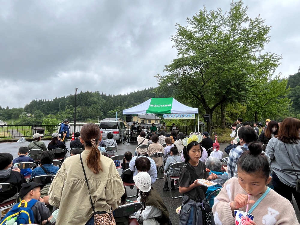 たくさんの笑顔に包まれた一日でした。百萬石太鼓さんの迫力ある太鼓演奏にウクレレ演奏ではウクレレの音色に癒されそして誰もが童心にかえり感動したAWADAMAさんのパフォーマンス。終わってみれば模擬店の食べ物はほとんどのお店が完売。休憩スペースもたくさんの人で賑わい、こどもたちはモルックやくじ引き、輪投げも楽しんでいました。当日はクラブぽっとさん、金沢大学の学生さん、公民館役員や女性の会、老人会と沢山のかたの協力があって開催できました。今回のマルシェでは結婚して街に出た若い世代が沢山来場してくれ、多世代に渡って来場してくれたことが本当に嬉しかったです。マルシェがきっかけで医王山ていいな!町のみんなが優しくて、空気も美味しい!緑豊かでいいところだな。と思ってもらえたら幸いです。