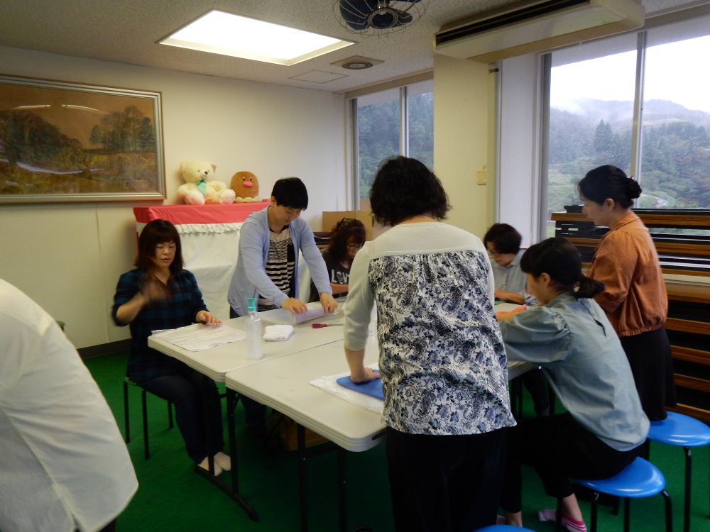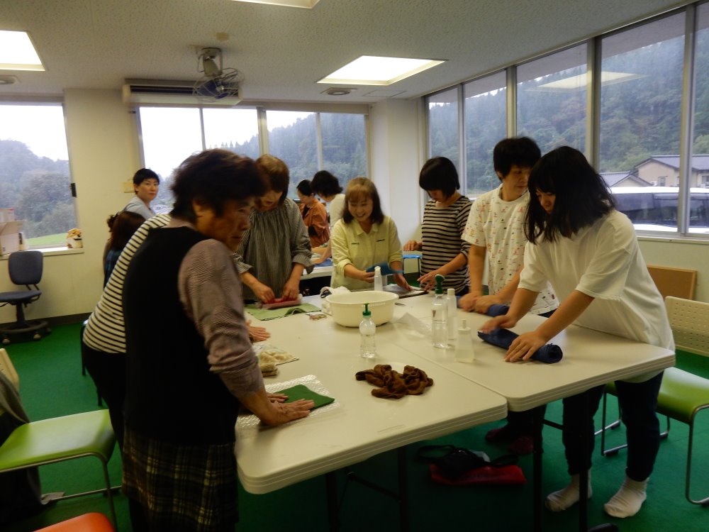 まんまる羊の松村明子先生にお越しいただき羊毛フェルトでミニポーチ作りを教えてもらいました。