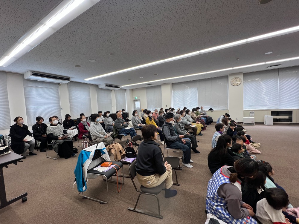 今年もみずほ保育園の園児に加えちょうど体験学習で来園していた医王山中学校二年生の生徒たち、そして今回はトオの家のデイサービスに通われてる利用者さんも招待しました。前半は参加者の合わせて50名を超える客席。
